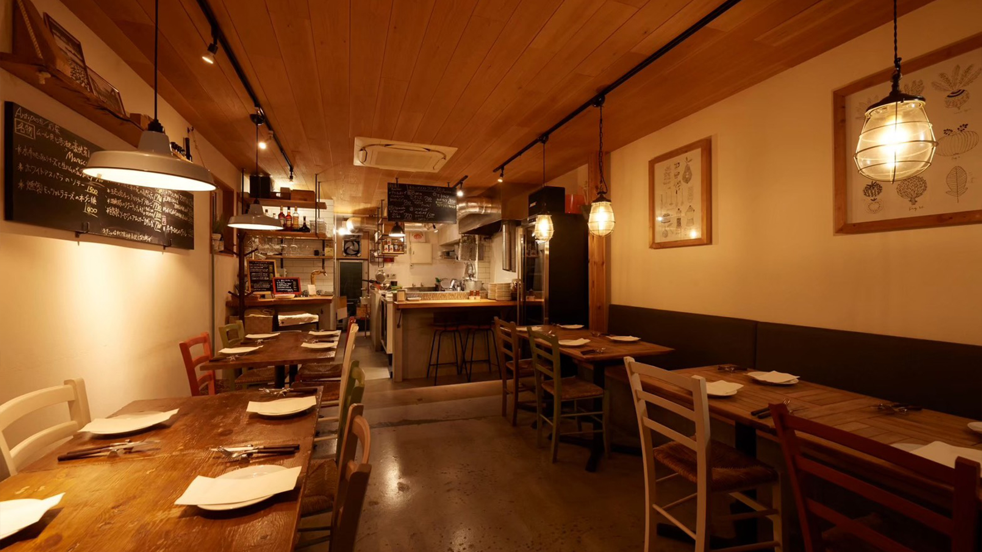 木目を基調とした落ち着いた店内は、イタリアの港町を思わせる雰囲気。ゆったりとした時間が流れる空間で、料理やワインを楽しむひとときは、普段とは少し違う特別であり優雅な体験です。テーブル席やカウンター・テラス席を用意しており、人数やシーンに合わせて心地よくお過ごしいただけます。
